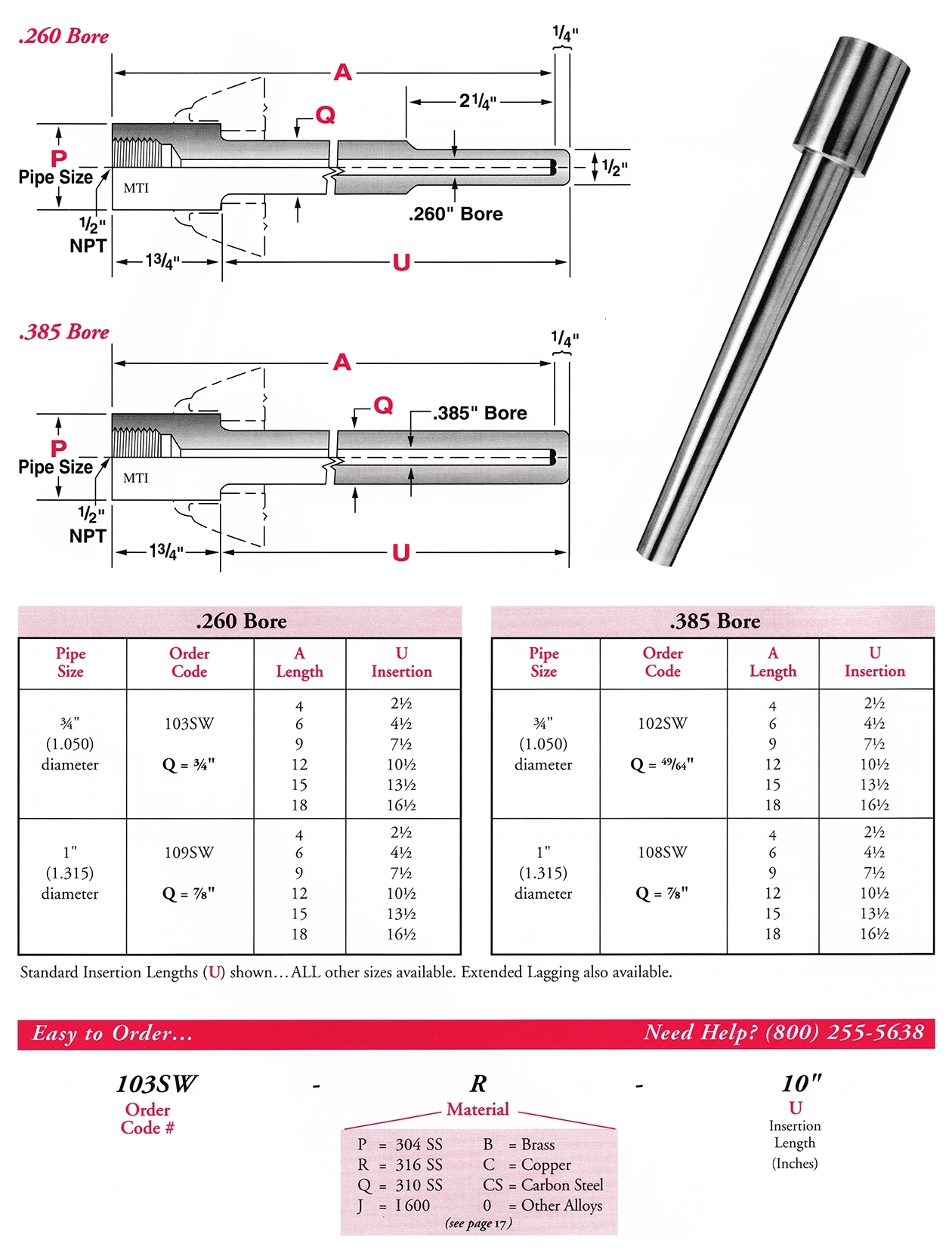 SOCKET-WELD THERMOWELLS (fits ¼" & ⅜" diameter elements)